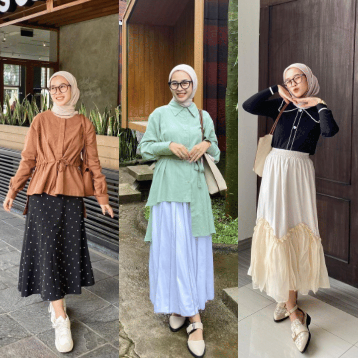 8 Inspirasi Mix and Match Flared Skirt ala Ayu Fuziyanti, Selalu Cocok