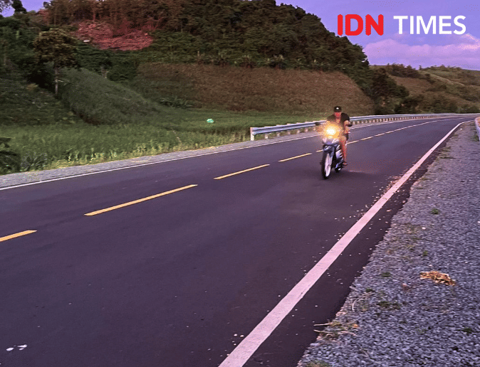 Hari hampir malam ketika kami akhirnya tiba di Jalan Lingkar Selatan. Sesuai harapan kami, jalan tersebut begitu mulus, hitam, dan lebar. Wow banget, deh.