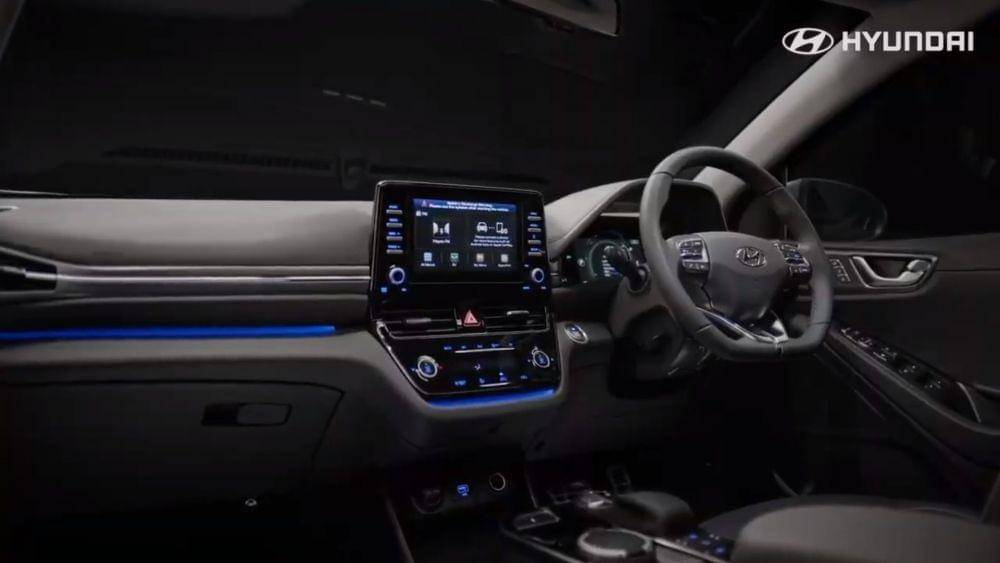 Interior Ioniq EV dilengkapi dengan layar sentuh untuk infotainment berukuran 8 inci. Lewat layar infotainment ini, pengemudi bisa mengetahui kapasitas baterai, jarak berkendara, pilihan mode berkendara, dan pilihan berbagai pengaturan fungsi berkendara