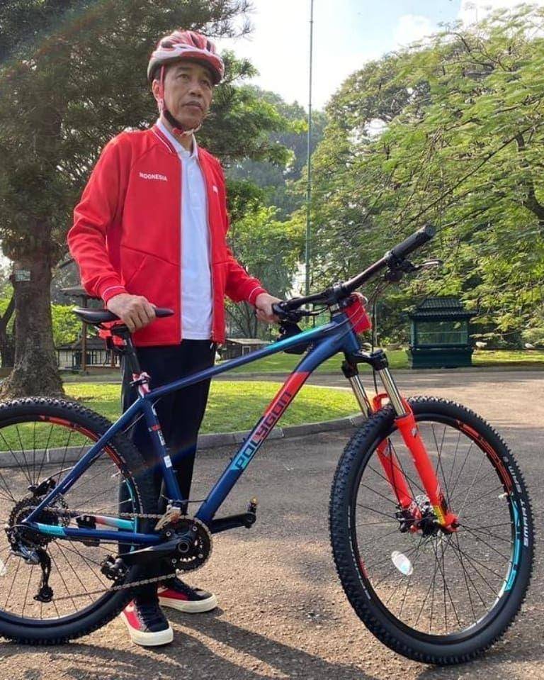 3. Selain itu, Jokowi juga tampil gagah dengan memamerkan sepeda gunung (MTB) Polygon miliknya, 3 sepeda ini asli buatan Indonesia!