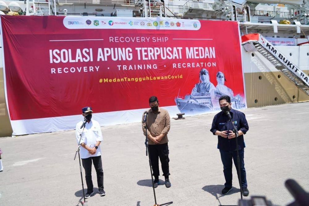 Jakarta, IDN Times - Menteri BUMN Erick Thohir meminta warga Medan yang terpapar virus corona memanfaatkan fasilitas isolasi mandiri terapung (isoter) di atas kapal laut KM Bukit Raya yang bersandar di Pelabuhan Belawan, Medan, Sumatera Utara.