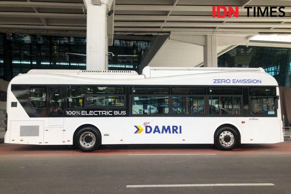 Tangerang, IDN Times - DAMRI melakukan uji coba bus listrik yang melayani trayek regular dari dan ke Bandara Internasional Soekarno-Hatta.