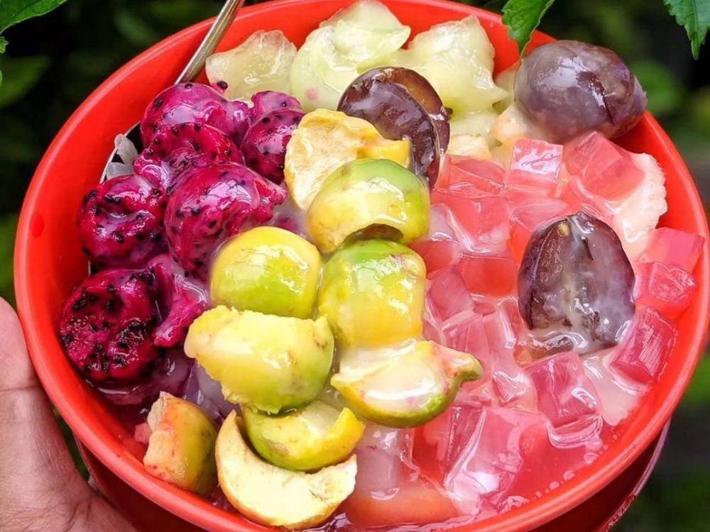 8. Es oyen, minuman khas Bandung dengan campuran buah-buahan, rumput laut, ditambah es serut dan susu kental manis