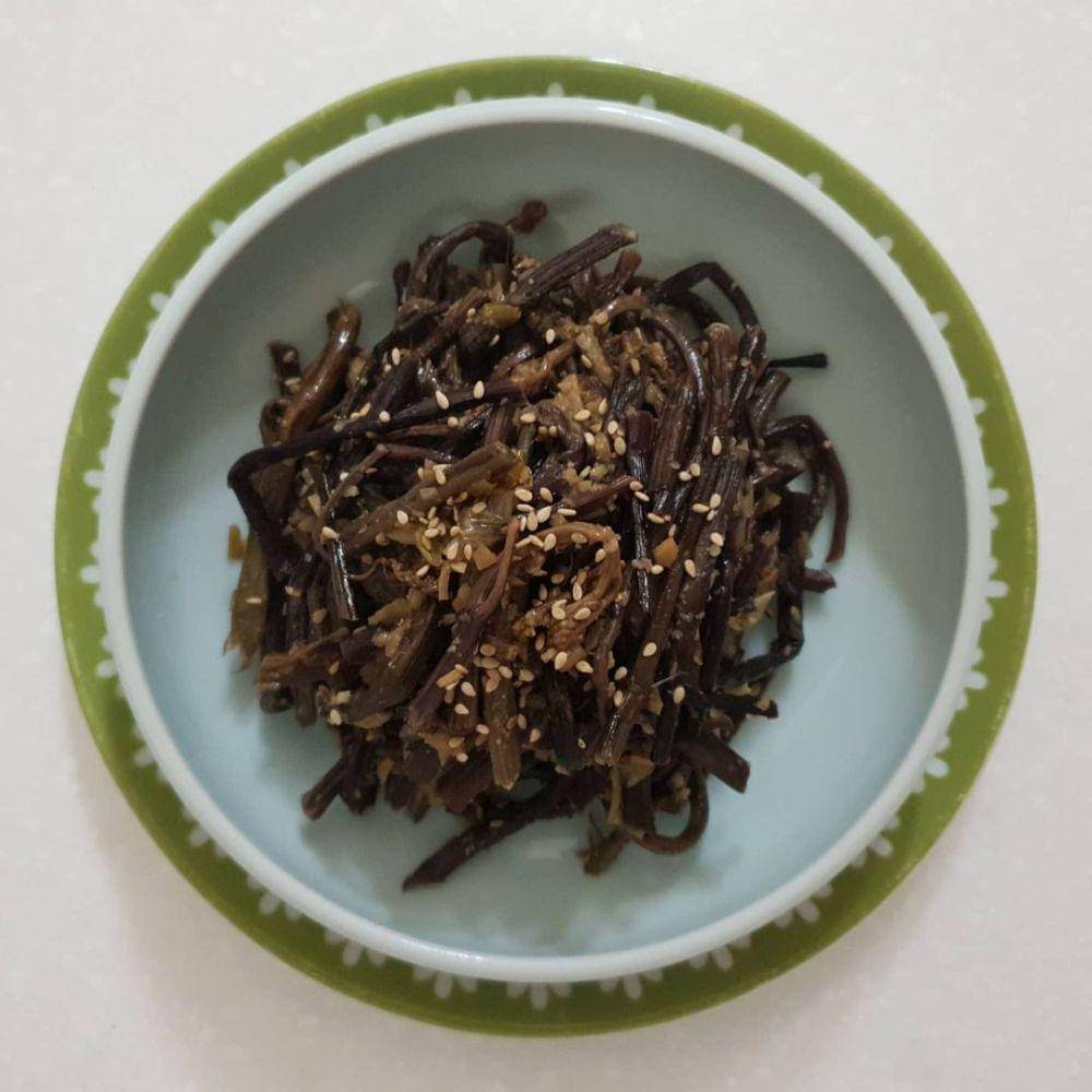 11. Gosari namul termasuk dalam banchan klasik yang sering dihidangkan bersama mu namul dan sigeumchi namul. Bahannya adalah tanaman pakis