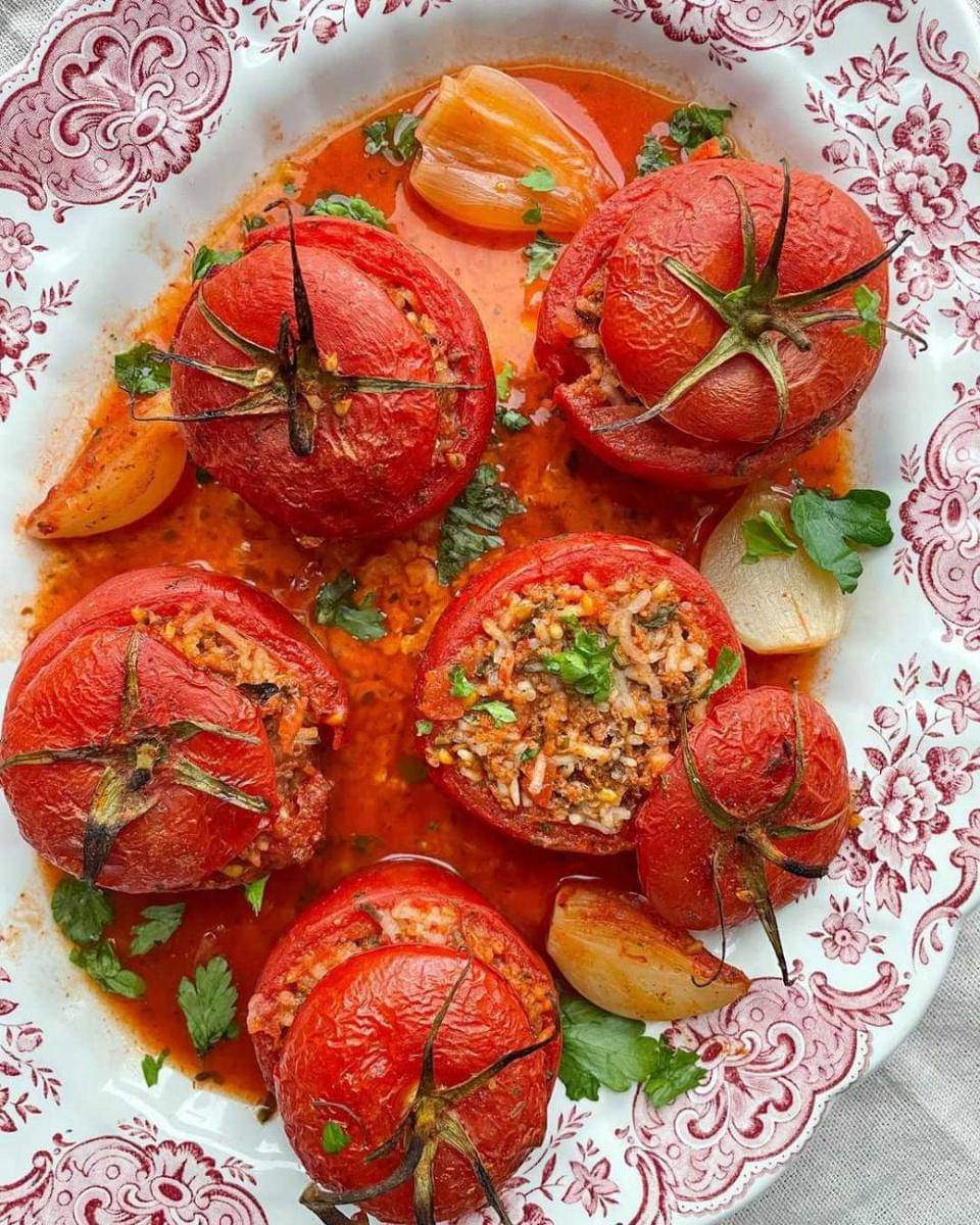 Tak hanya popular di Turki, domates dolmasi juga cukup terkenal di negara seperti Azerbaijan, lho. Hidangan ini terbuat dari tomat utuh yang isinya dikeluarkan dan diganti dengan ragam bahan lainnya.