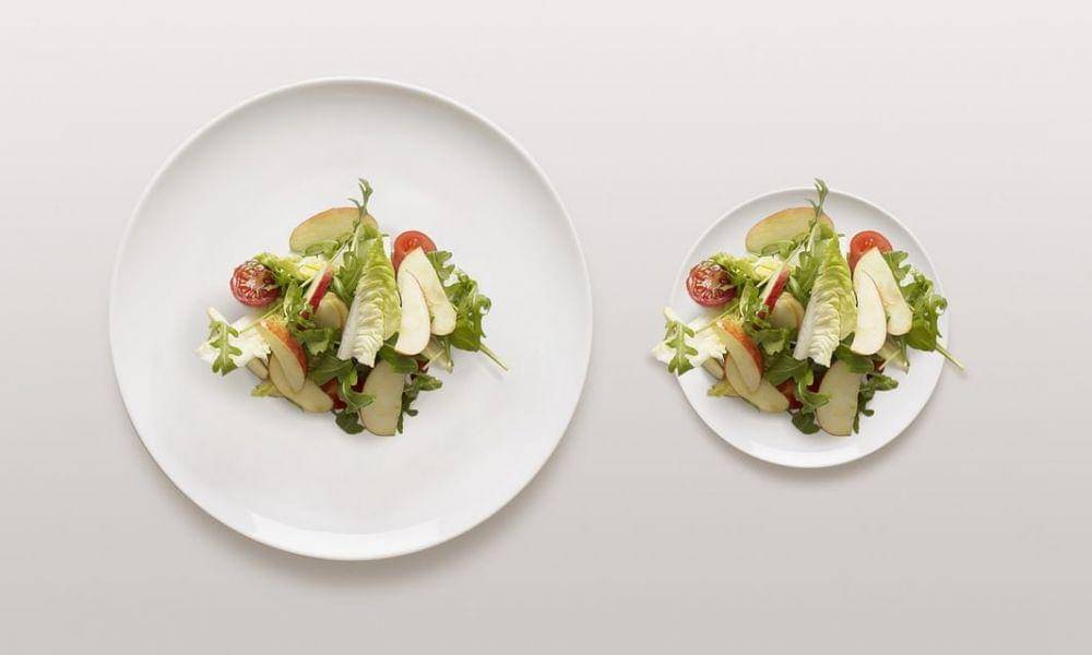 Piring yang kamu gunakan beri pengaruh pada porsi makan, lho. Piring ukuran besar cenderung bikin seseorang makan lebih banyak pula. Sementara ketika menyantap makanan dengan piring kecil, akan lebih sedikit yang kamu konsumsi. Maka dari itu, ganti piringmu dengan ukuran yang lebih kecil. Perut akan tetap kenyang walau porsi yang kamu makan sebenarnya gak sebanyak biasanya.