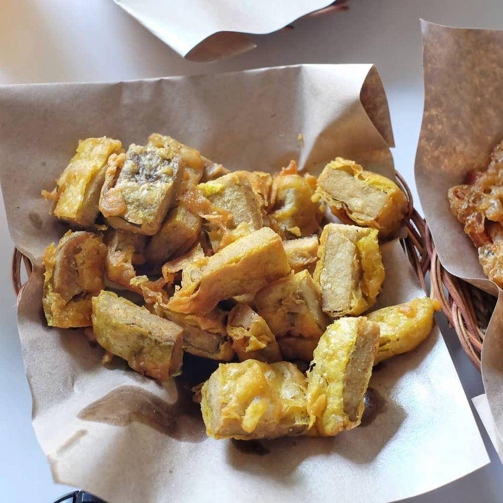 6. Godo tempe khas Gresik terbuat dari tempe goreng tepung yang disajikan dengan sambal petis khas Jawa Timur. Kudapan ini memiliki cita rasa manis, gurih, dan pedas yang lezat