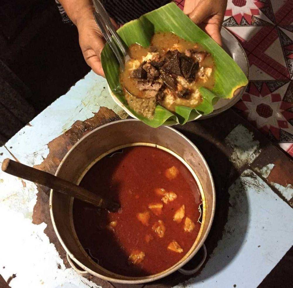 8. Ciri khas penyajian lainnya yang tergolong unik yaitu nasi disiram dengan kuah kaldunya