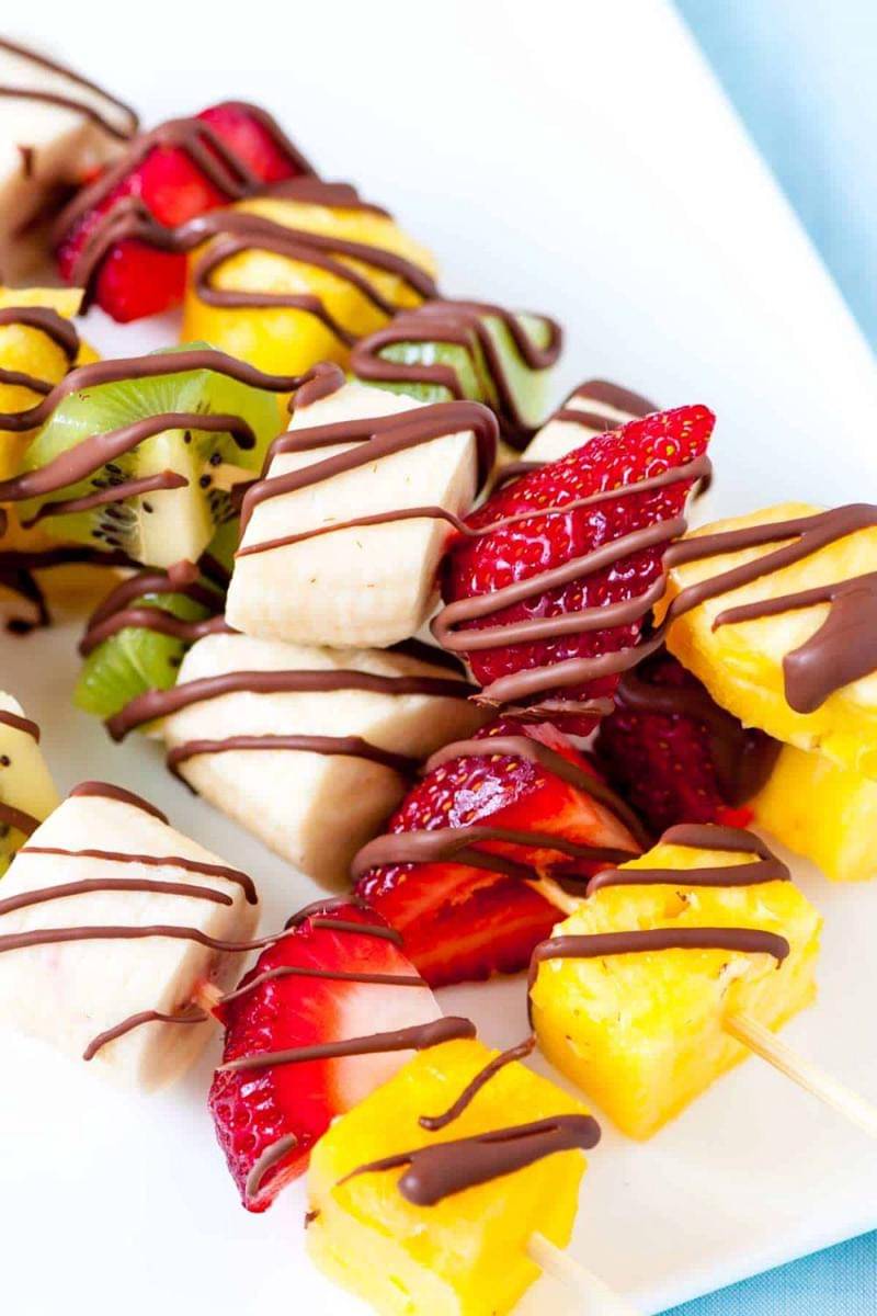 Bosan dengan olahan yang hanya menggunakan satu buah sebagai bahan utamanya? Nah, kamu juga bisa mencoba untuk memadukan berbagai jenis buah-buahan seperti pisang, nanas, strawberry, kiwi, semangka, melon, dan beberapa buah lainnya untuk kemudian disatukan membentuk tusukan sate dan setelah itu dibalur dengan cokelat. Soal pembaluran cokelatnya pun beragam, dapat dilakukan dengan sedikit saja sentuhan diatas buah, atau mencelupkannya secara penuh.