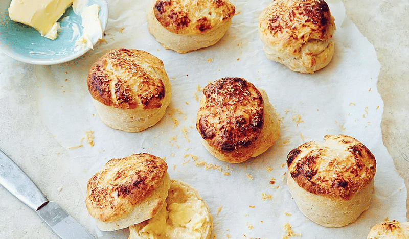 Creamy dan gurih parutan keju parmesan yang menyatu dengan adonan scone, bisa bertambah lagi cita rasanya saat disantap dengan cara menambahkan olesan butter.