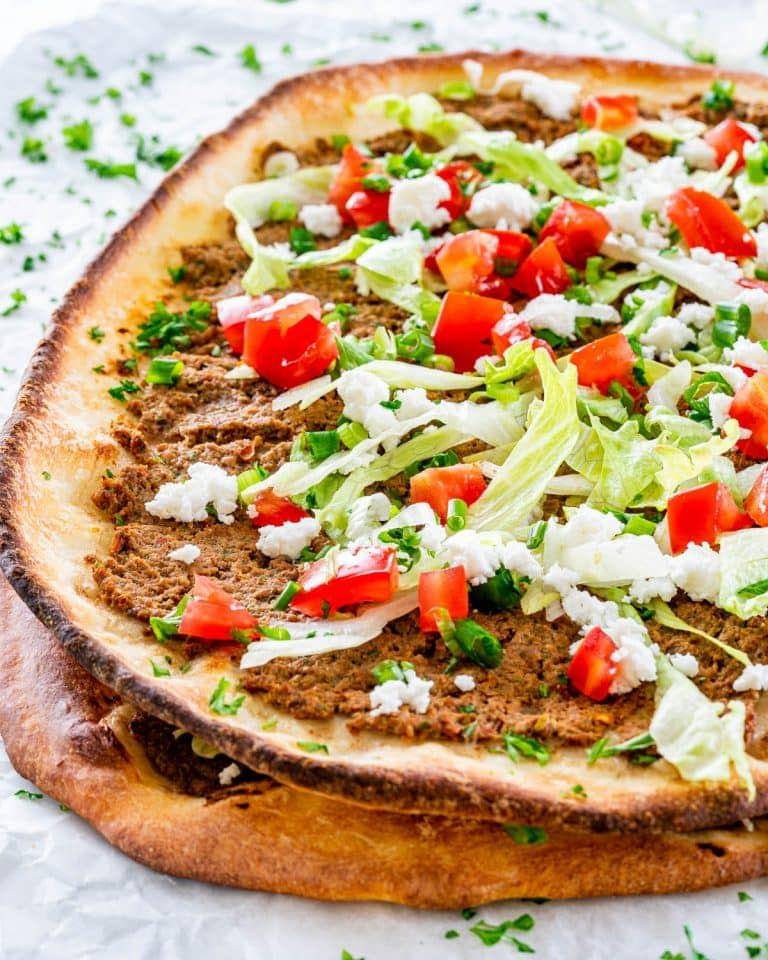 Lachmacun juga mempunyai bentuk yang mirip dengan pizza. Biasanya lachmacun ini diberi isian daging giling, bawang bombai, pasta cabai, tomat, lada, rempah, dan juga herb.