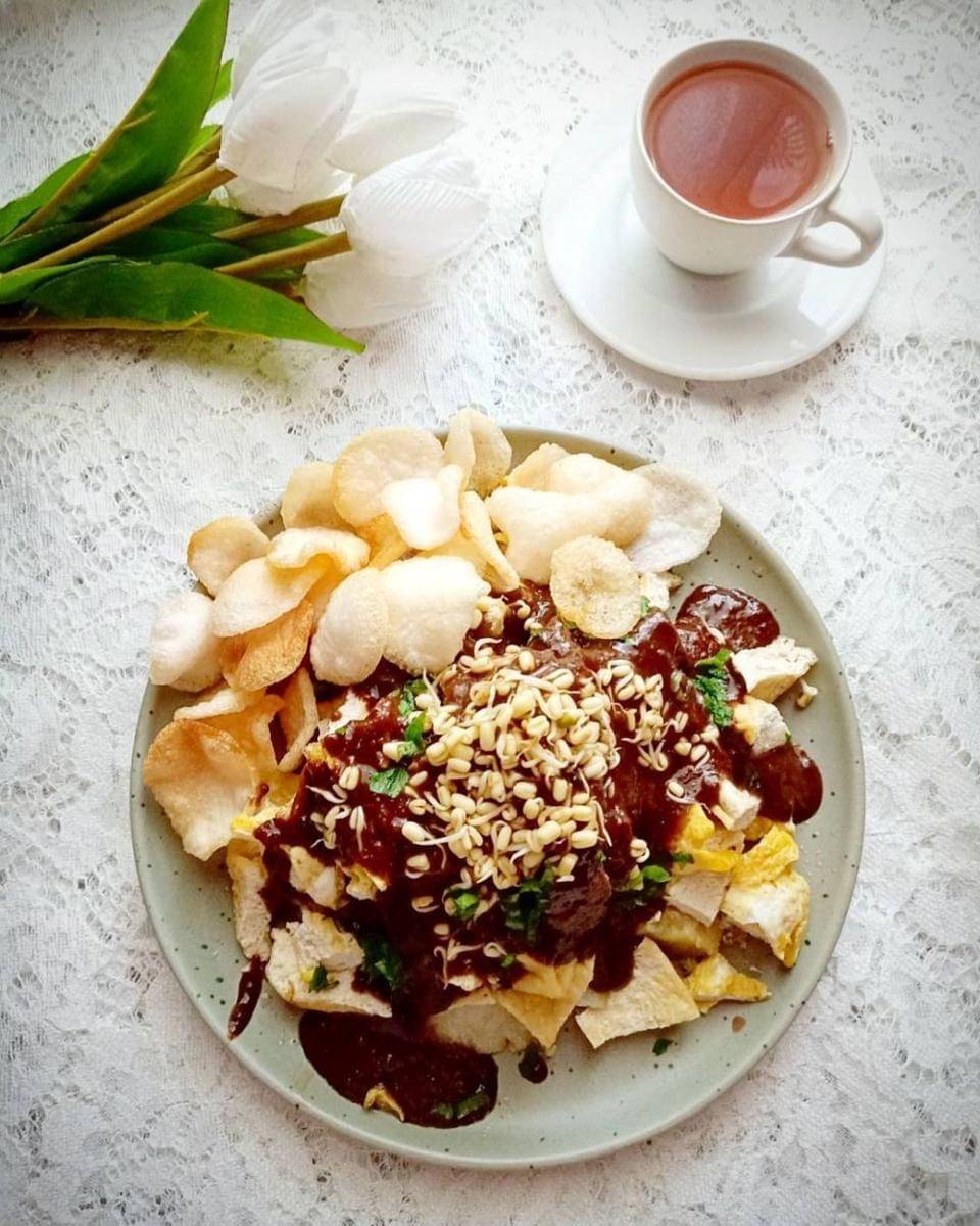10. Lontong kari biasanya disajikan sebagai hidangan sarapan di Bandung. Dilengkapi dengan emping yang bikin rasanya makin gurih