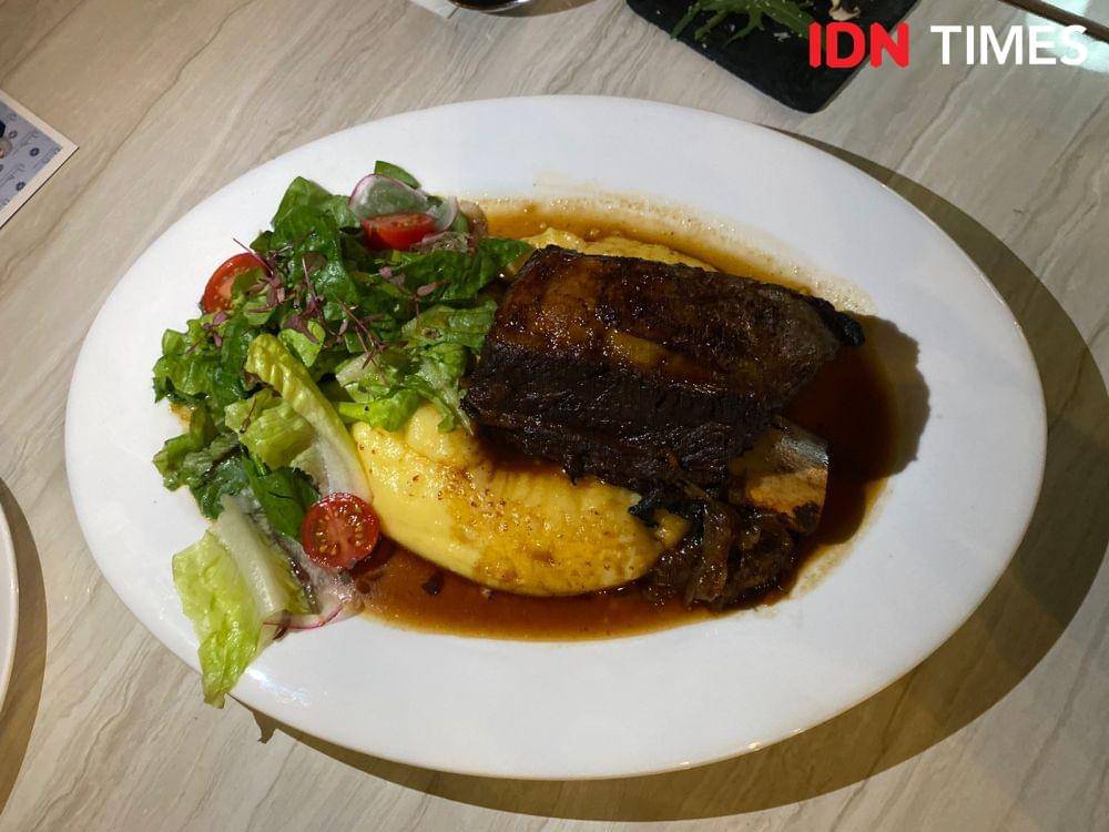 Menurut kami, menu main course mereka worthit untuk dicoba, terutama menu 19-hour short ribes. Porsinya begitu besar, lengkap dengan signature pomme puree, au jus, dan greens. Dagingnya sangat lembut, bahkan kamu tak perlu menggunakan pisau untuk menyantapnya.