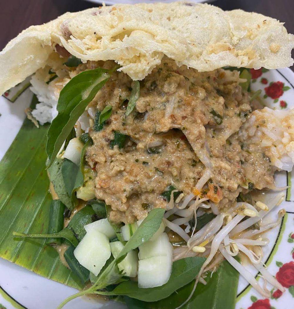 Selain bumbu yang nendang, kamu juga bisa memilih berbagai lauk pauk sesuai selera, seperti dadar jagung, telur, sate daging, ayam, dan masih banyak lagi. Porsi pecelnya pun cukup besar, dijamin bikin kamu kenyang dan puas.