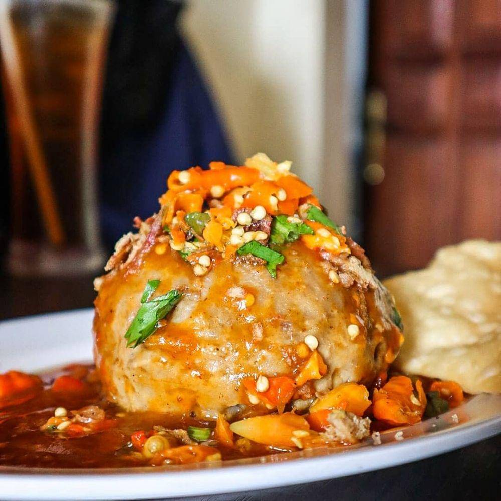 Pencinta bakso pasti sudah tak asing dengan bakso yang satu ini. Namanya bakso lava. Warna merah dari sambal isiannya bikin ngiler, bukan?