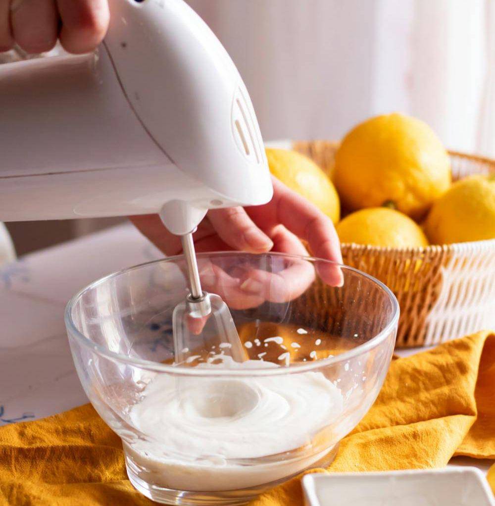- Siapkan wadah besar, campurkan SP atau emuslifer, gula dan telur bersamaan. Aduk dengan mixer berkecepatan tinggi sampai putih kental berjejak.