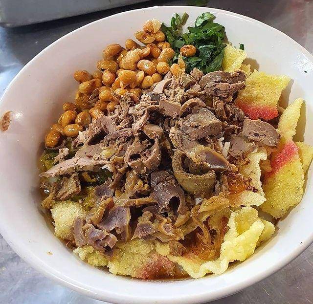 - Lalu susun ketupat, taoge, mie, dan tahu iris dadu dalam mangkok saji. Siramkan kuah tauco.