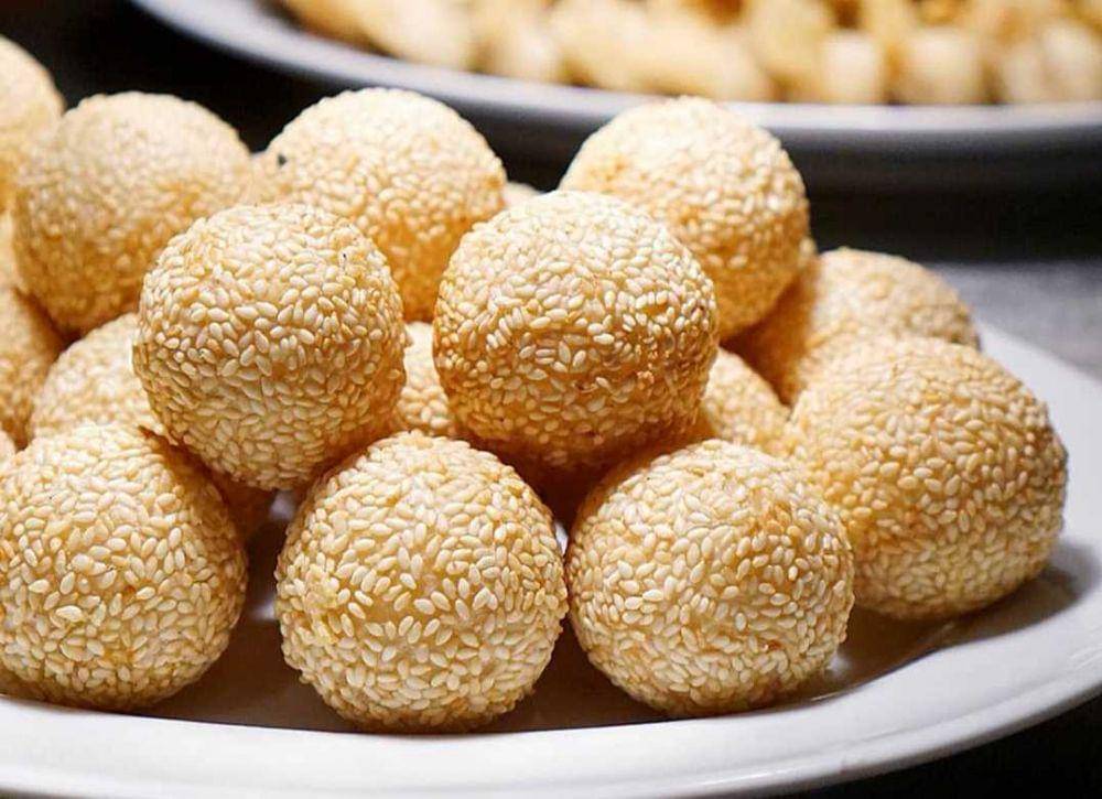 - Ambil secukupnya adonan, bulat pipihkan lalu beri isian kacang hijau. Bulatkan kembali hingga rapi, lakukan hingga habis. Olesi adonan dengan sedikit air, kemudian celupkan ke dalam wijen. Goreng adonan hingga matang kuning kecoklatan, matikan api. Angkat dan tiriskan, siap disajikan.