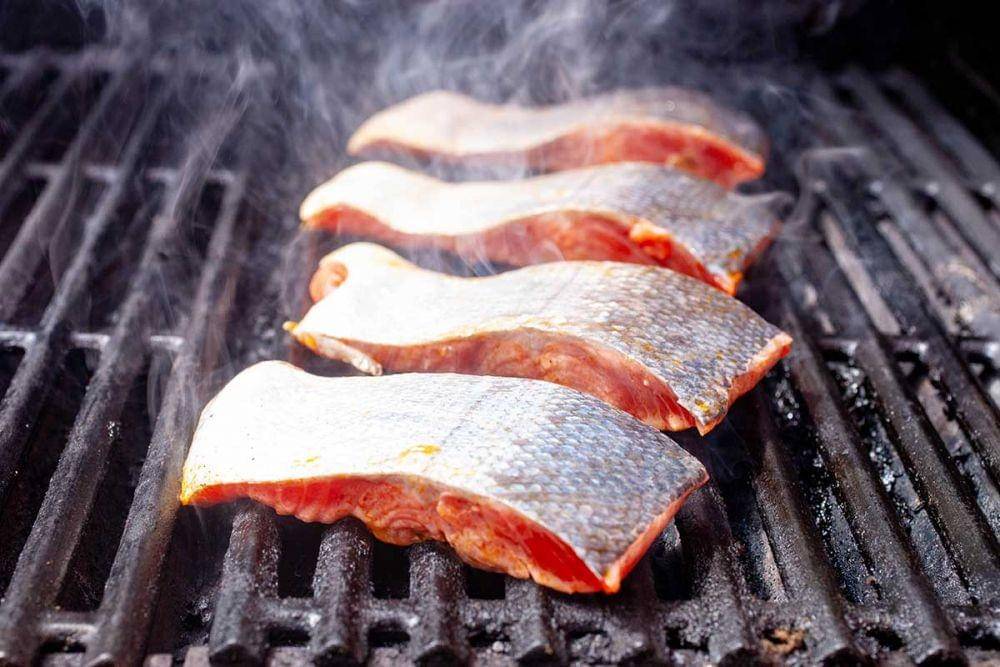 Setelah itu, panaskan grill pan di atas kompor. Saat sudah panas, panggang ikan salmon di atasnya.