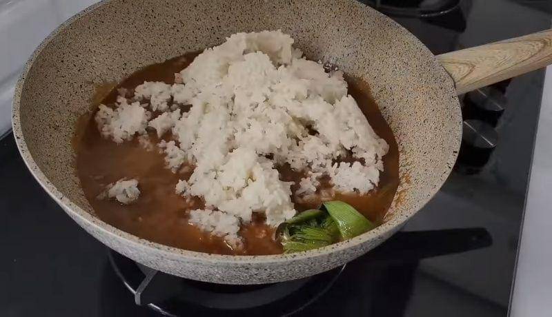 - Masukkan nasi ketan yang sudah matang ke dalam wajan berisi larutan gula merah. Aduk sebentar sampai larutan gula merah dan nasi ketannya menyatu. Nyalakan kompor di api sedang, lalu aduk terus sampai larutan gula merahnya surut dan teksturnya jadi lebih lengket.