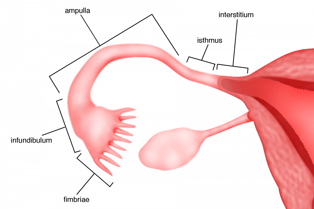 - Infundibulum: bagian yang memiliki fimbriae (berfungsi untuk menangkap sel telur yang dikeluarkan ovarium)