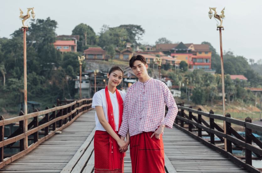 9. Ini dia potret Tor dan Plengkwan saat syuting di Mon Brigde, Sangkhlaburi, jembatan kayu terpanjang di Thailand