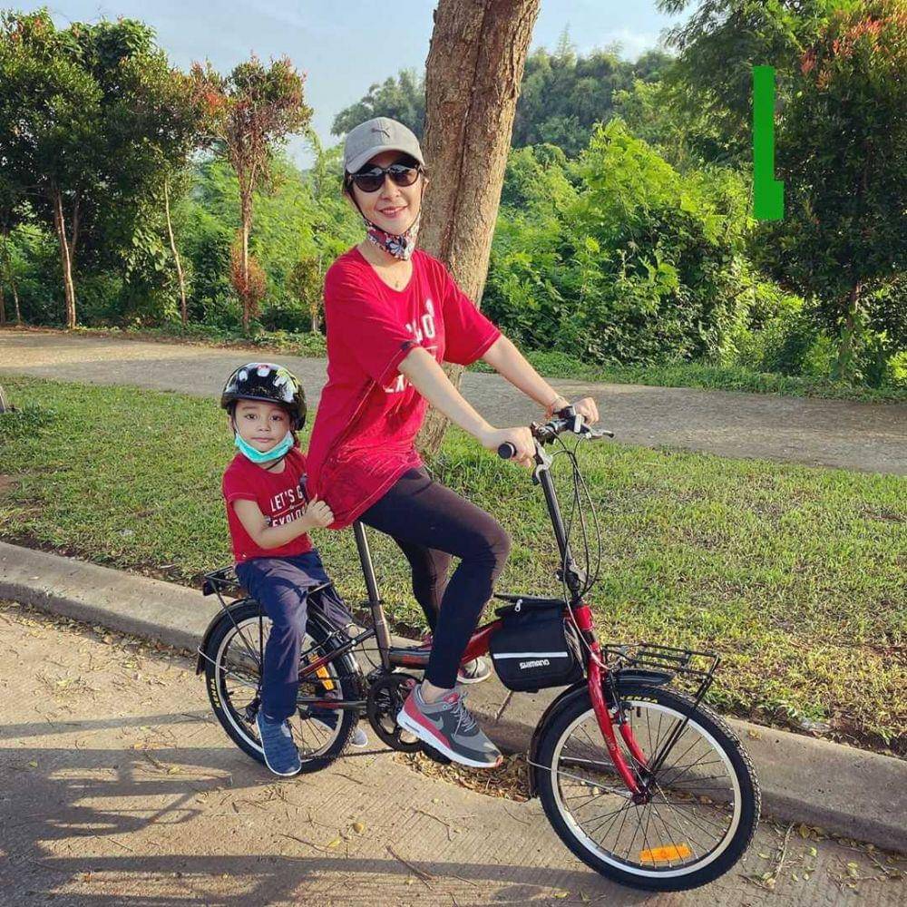 5. Uut dan sang buah hati kerap main sepeda bersama. Ibu anak goals, nih!