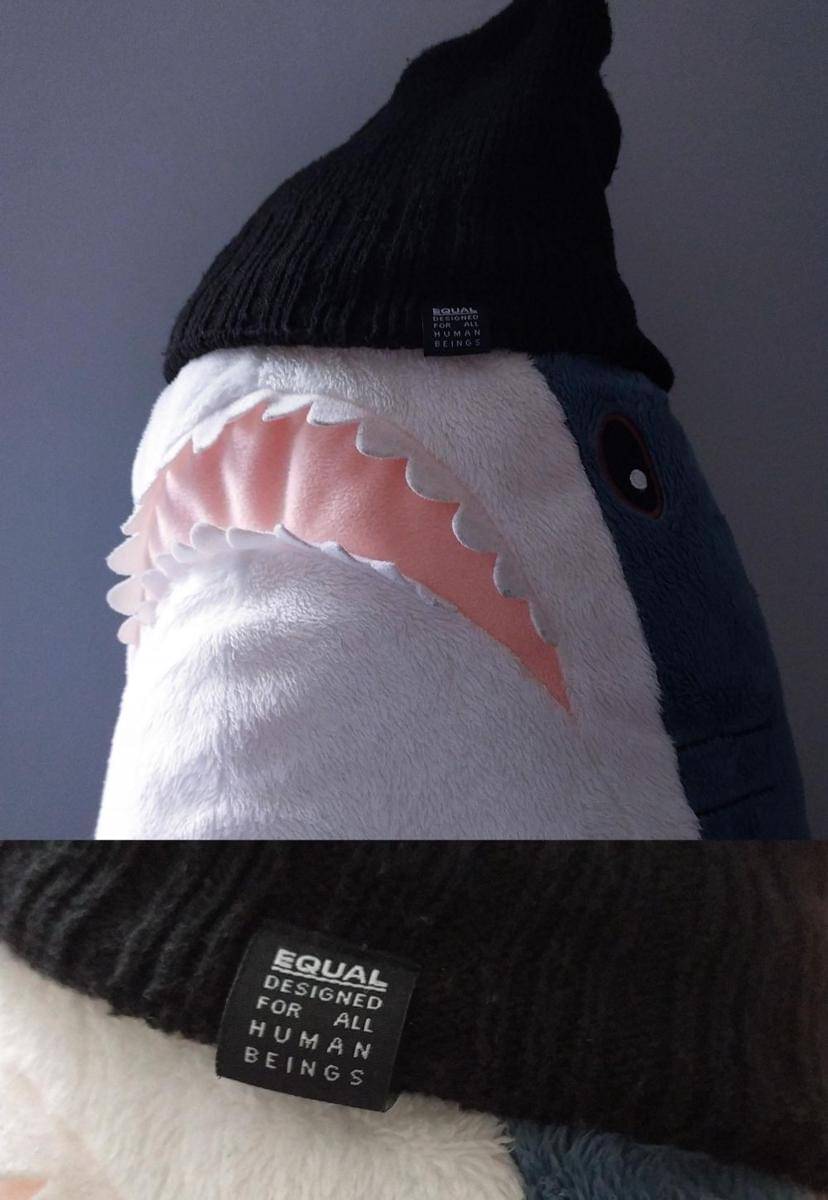 2. Harusnya kupluk ini cuma dipakai sama manusia, tapi kok cocok sama boneka hiu ini, ya?