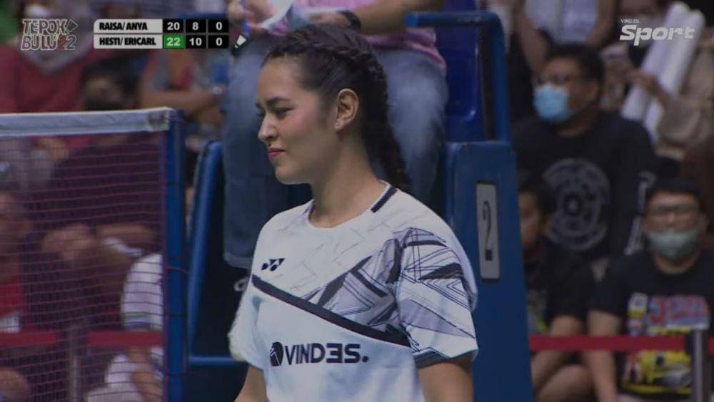 9. Di akhir pertandingan, tim Raisa/Anya harus mengakui keunggulan dari tim Hesti/Erica yang menang dengan skor 22-20 dan 21-15