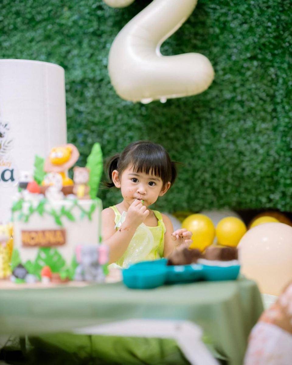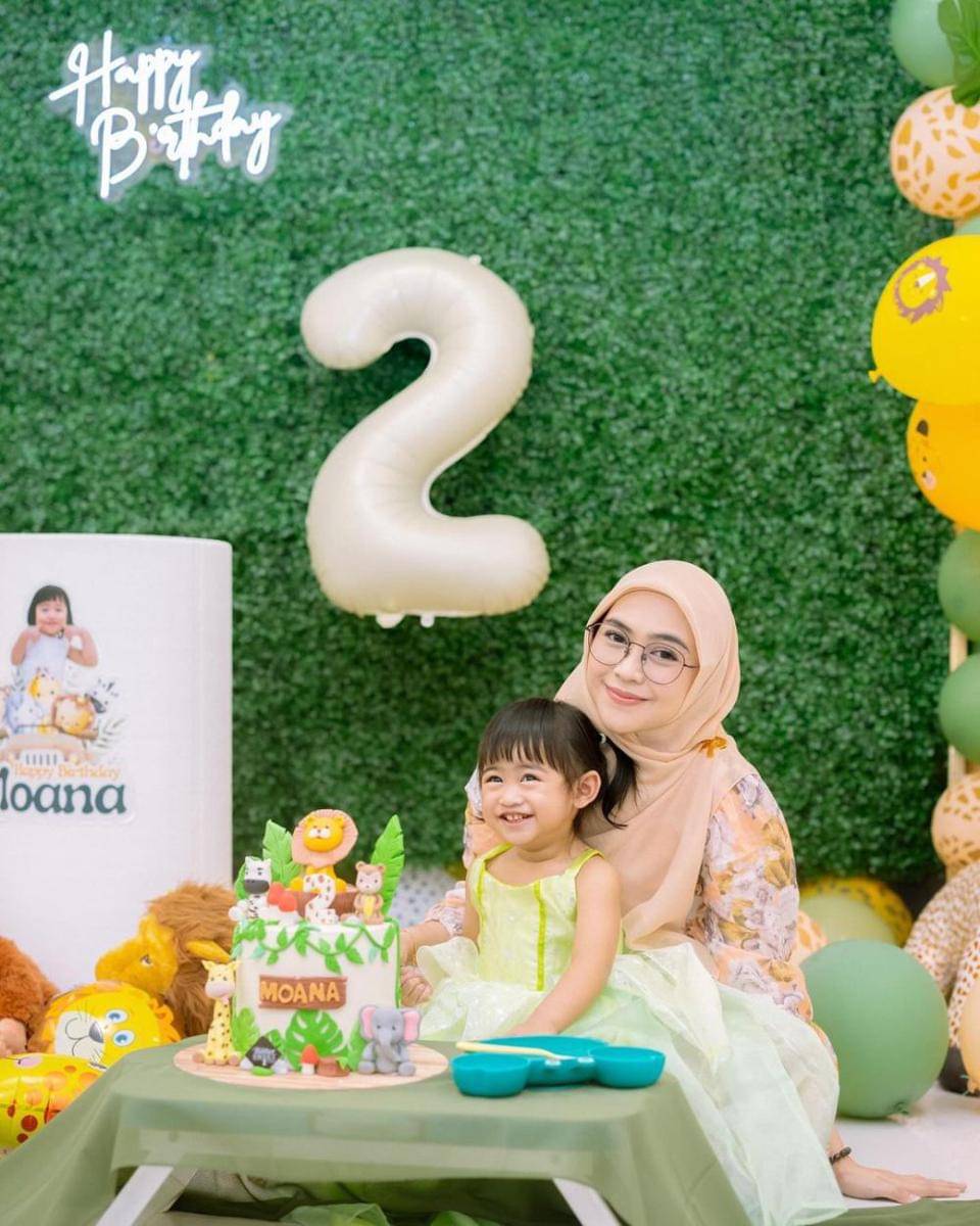 2. Ria Ricis dengan busana motif bunganya terlihat bersemangat merayakan ulang tahun ke-2 sang putri. Ricis bangga melihat pertumbuhan Moana!