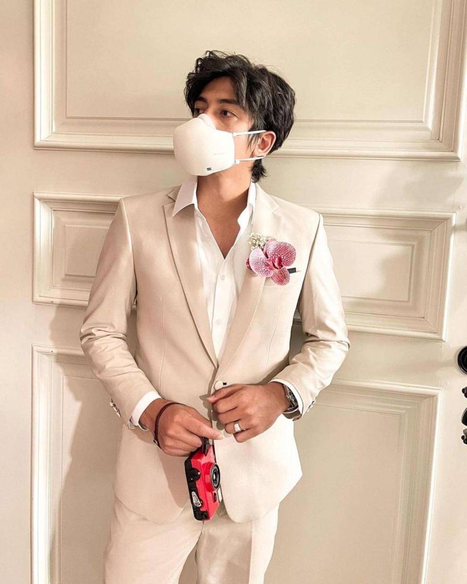 8. Jadi groomsmen, Ady Sky tampil menawan dalam balutan jas berwarna krem
