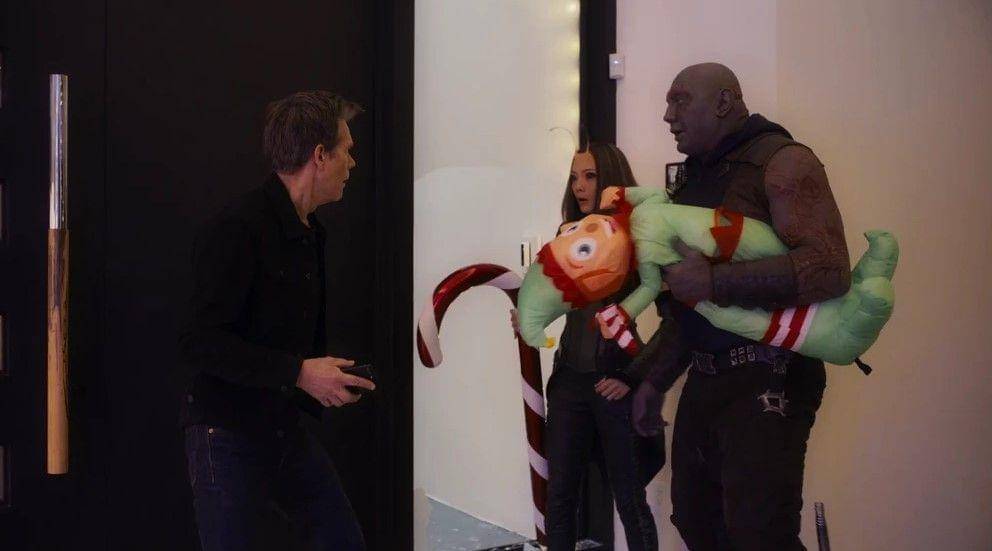 Sebelum GOTG Vol. 3, Marvel merilis film pendek bertajuk Guardians of the Galaxy Holiday Special. Film ini menunjukkan Drax dan Mantis yang menculik dan membawa aktor Kevin Bacon ke Knowhere, demi menyenangkan Star-Lord.