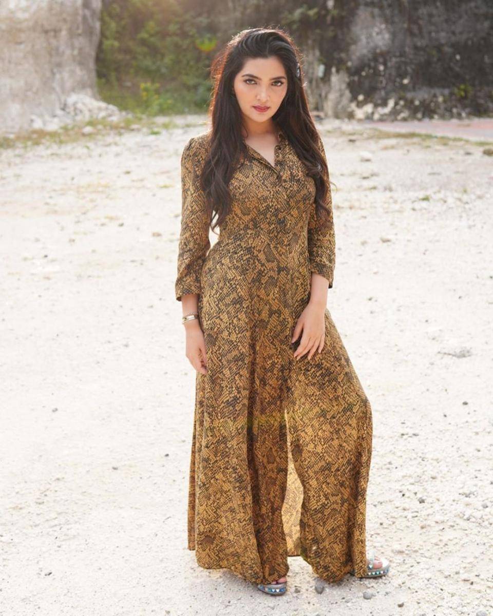 5. Pilihan warna coklat muda dan dipenuhi corak seperti ini, Ashanty makin terlihat sangar apalagi tatapannya