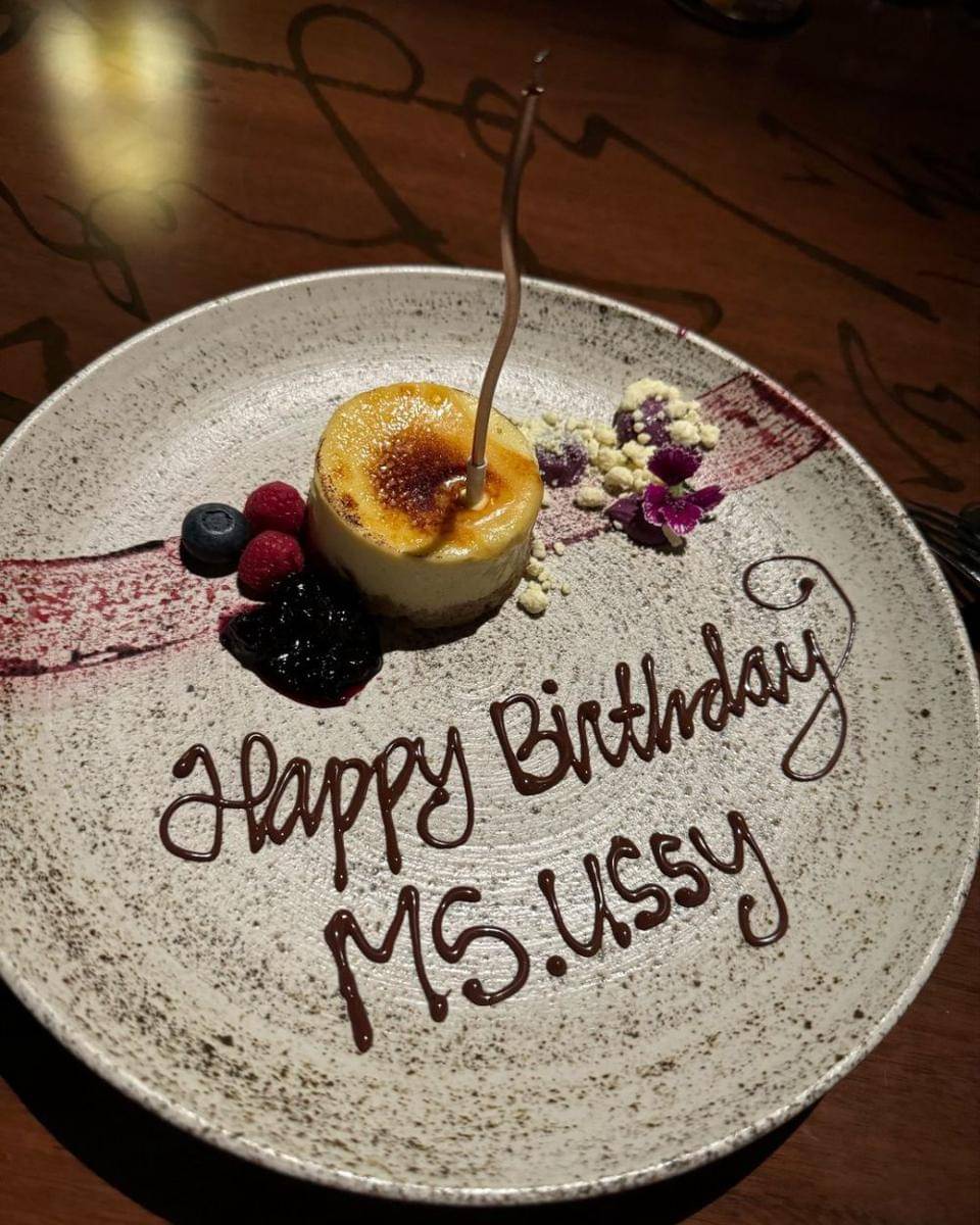 6. Selain makanan utama, Ussy mendapatkan satu kue kecil dengan lilin bertuliskan "Happy Birthday Ms. Ussy". Manis sekali, ya!