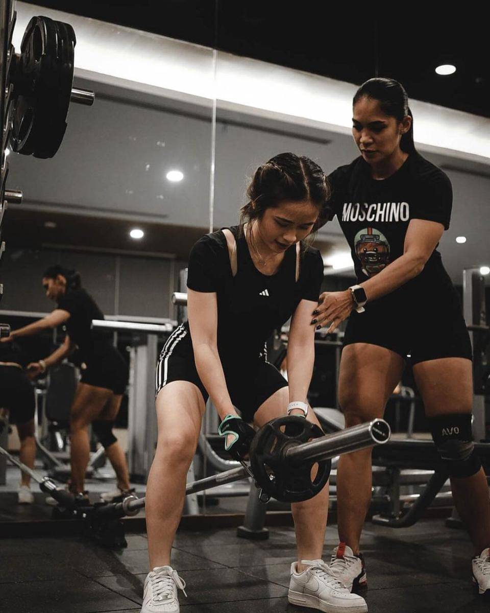 2. Bukan sembarangan fitnes, ia dilatih oleh pelatih profesional. Bahkan, ia sendiri sudah terlihat akrab, lho, dengan sang instruktur