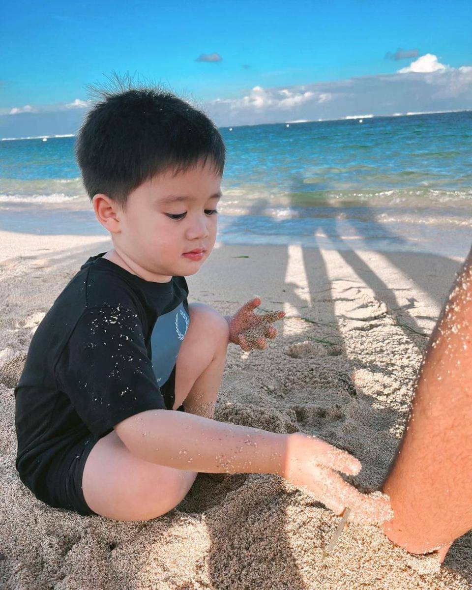 1. Inilah potret ceria Athar saat bermain pasir pantai