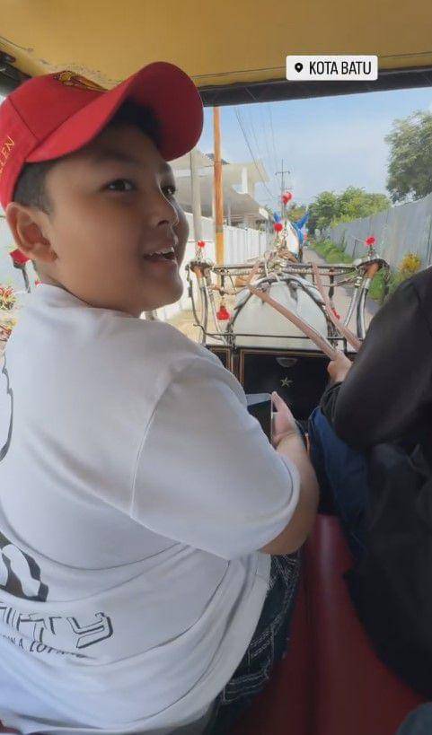 2. Yang unik, Kris Dayanti menggunakan transportasi delman bersama keluarganya