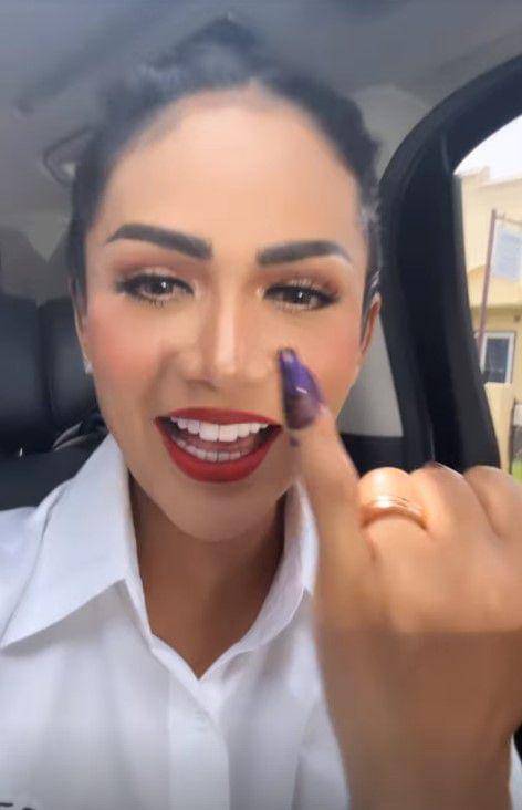 Sebagai warga negara yang baik, Kris Dayanti menggunakan hak pilihnya. Lega karena jari kelingkingnya sudah ada tanda tinta ungu.