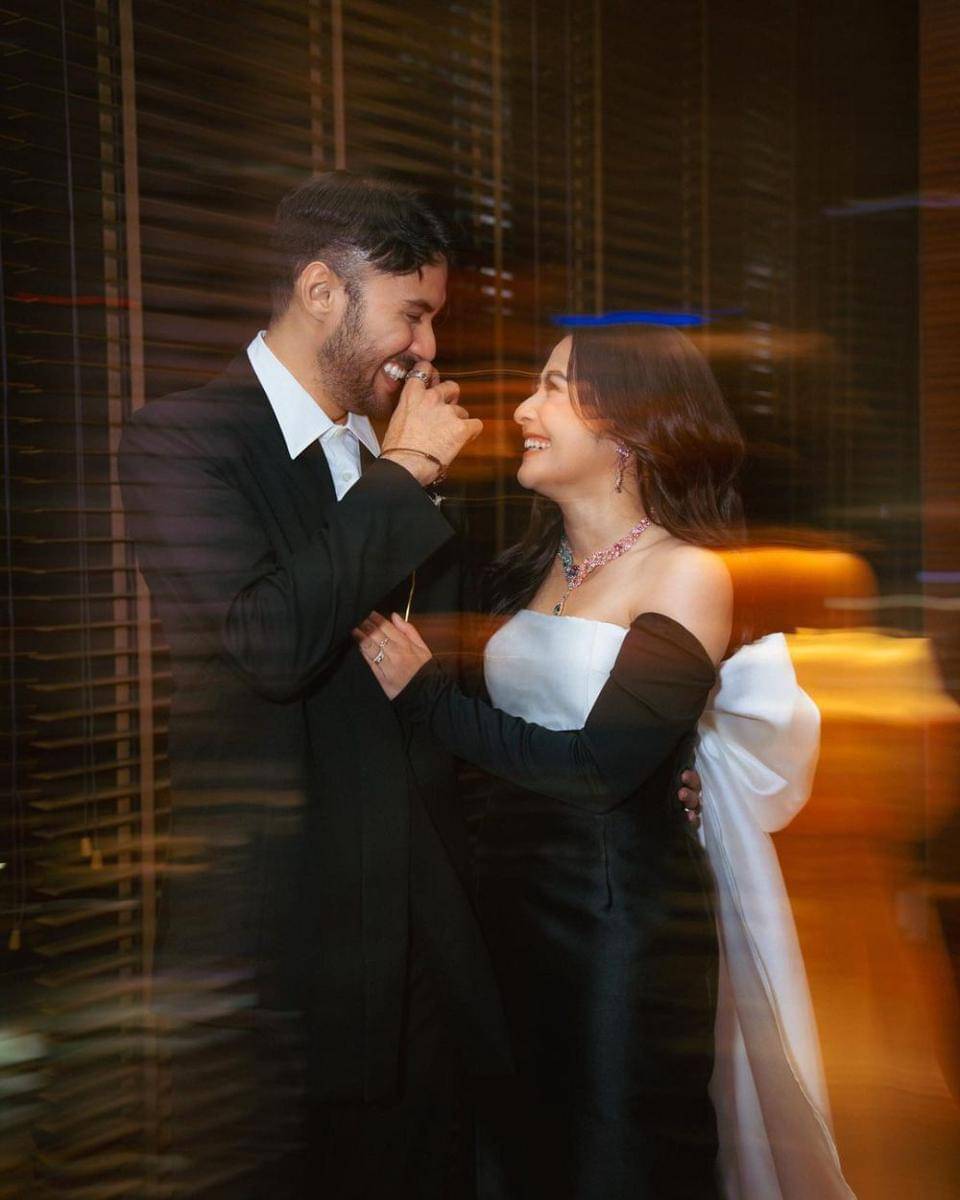 5. Tawa bahagia tampak jelas di wajah kedua artis multitalenta itu. Tatapan keduanya juga sangat mesra, lho!