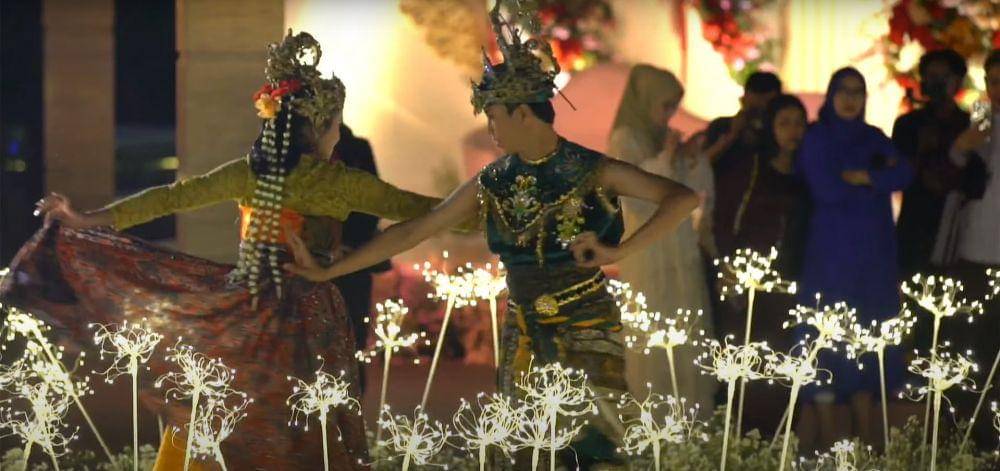 4. Berbagai penampilan dari penari turut memeriahkan resepsi pernikahan Rizki DA dan Hersa Rahayu