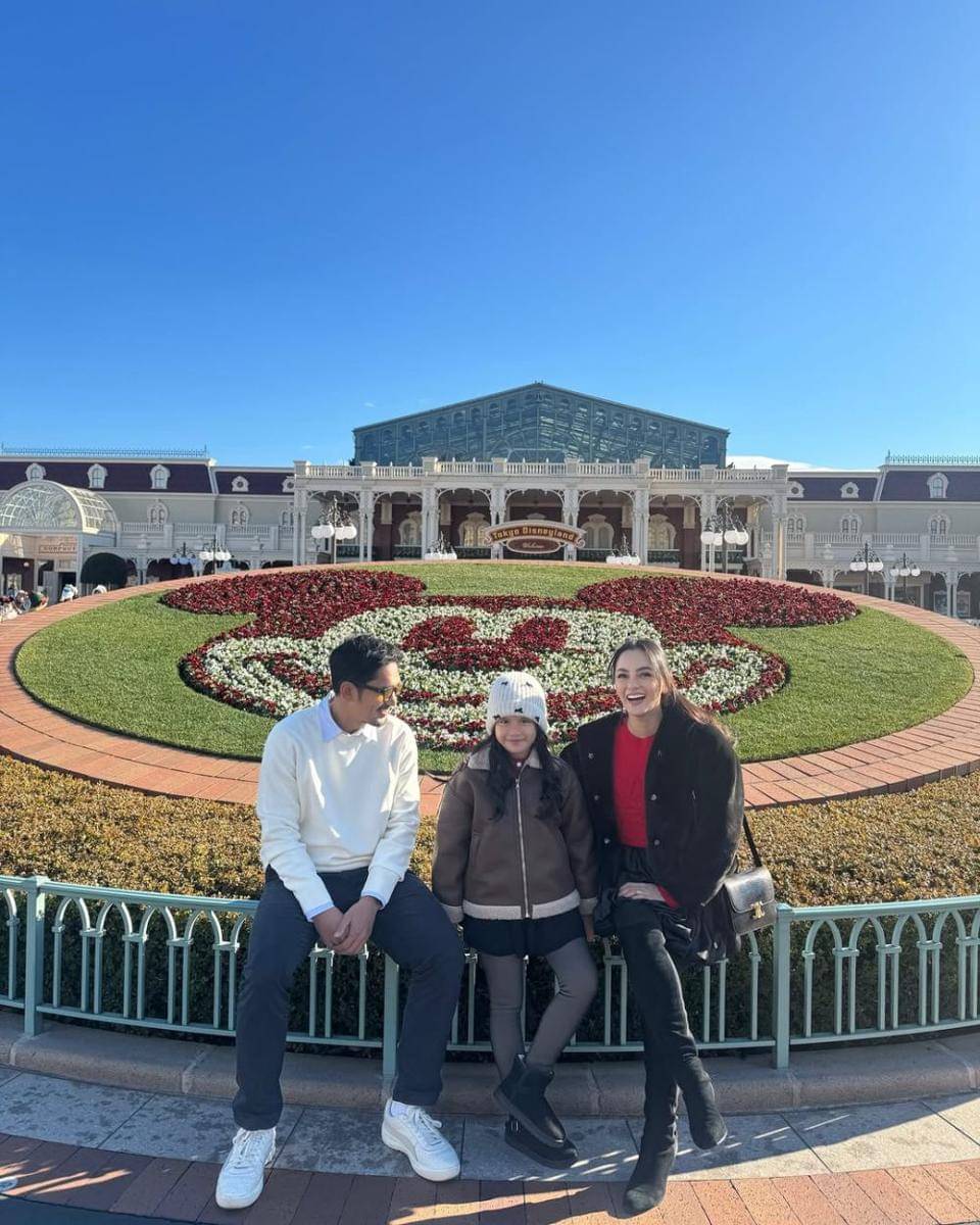 Masih liburan di Jepang, Ririn Ekawati bersama suami dan anaknya menghabiskan waktu liburan di Disneyland. Ia bersama keluarga kecilnya tampak sangat bahagia.