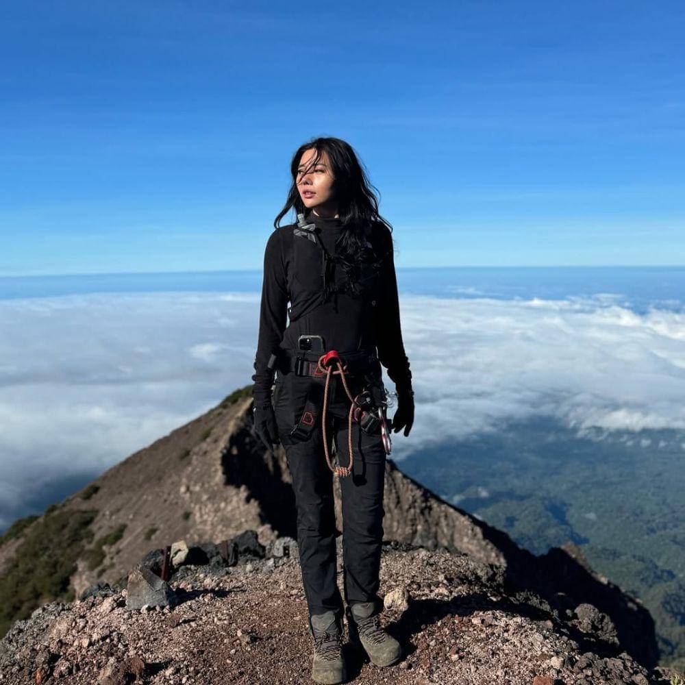 2. Wendy juga menaklukkan gunung tertinggi di Sumatera yaitu Gunung Kerinci. Ia menikmati momen matahari terbit dari atas gunung