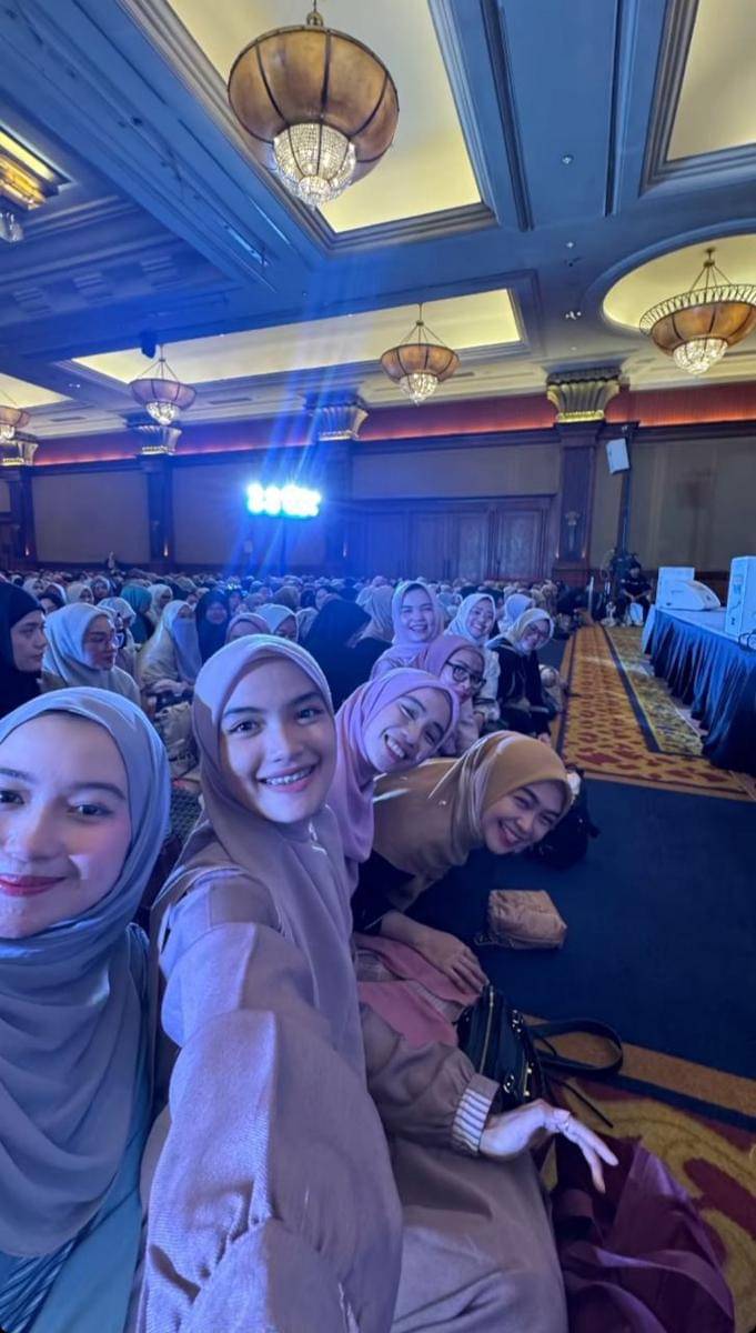 5. Ria Ricis duduk di antara peserta perempuan acara sharing time. Ia menempati barisan pertama, tepat di depan panggung