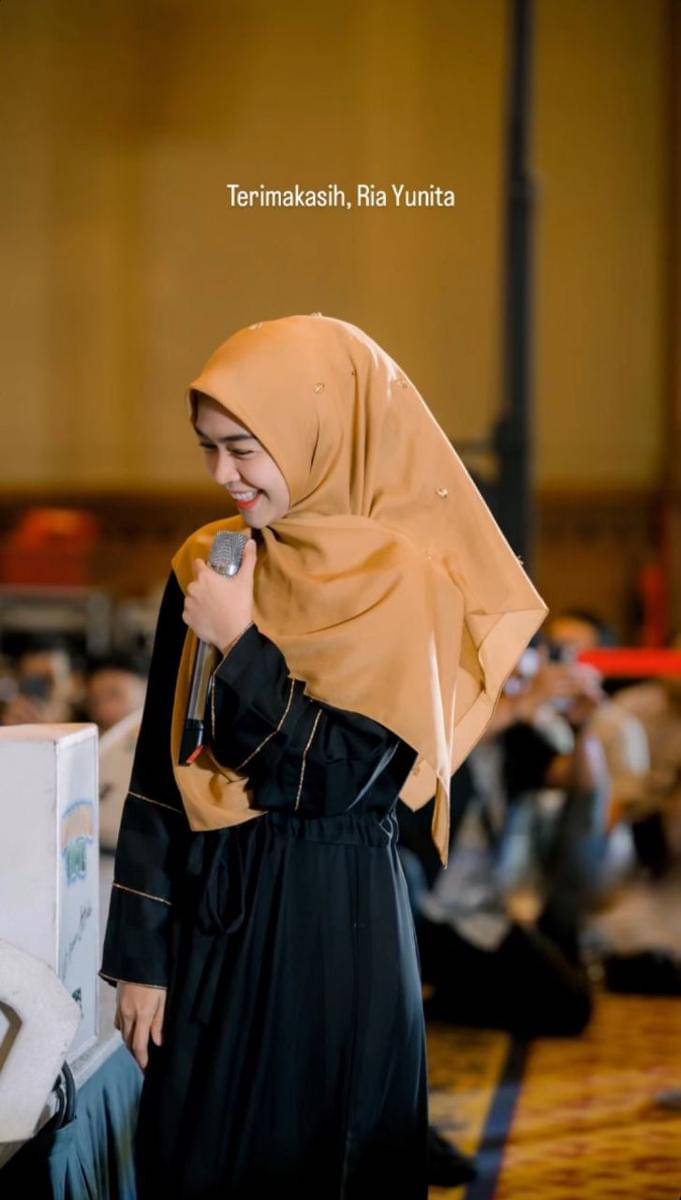 Ria Ricis terlihat menggunakan gamis berwarna hitam dengan hijab warna kuning. Ia pun hadir dan menyapa peserta sharing time tersebut. Bagaimana ya potret Ria Ricis saat menghadiri acara sharing time ustadz Hanan Attaki?