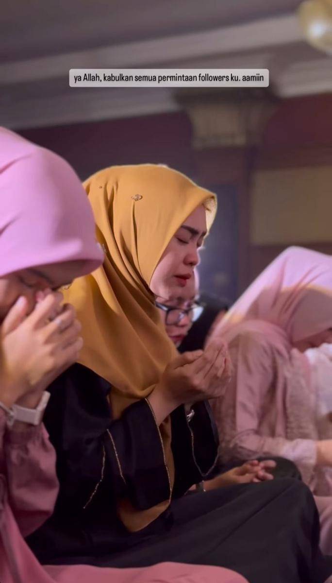 8. Dalam sesi doa, Ria Ricis begitu khusyuk berdoa. Bahkan, di unggahannya ia menulis semoga Allah mengabulkan doa para followers-nya, lho!