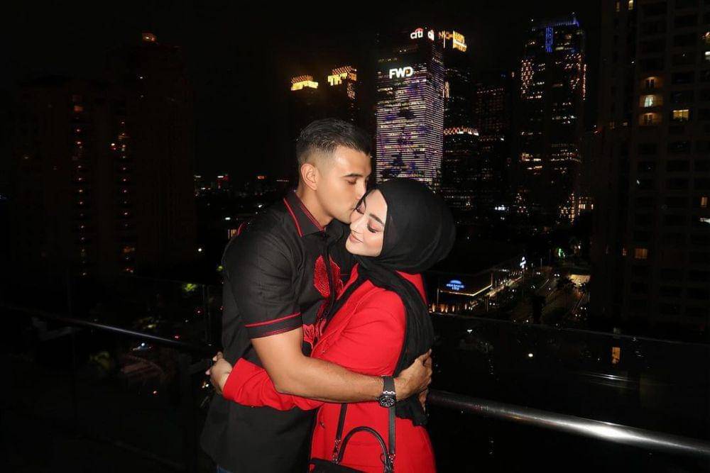 2. Keduanya tampil kompak dengan mengenakan busana serba hitam dan merah. Mesra banget, ya!
