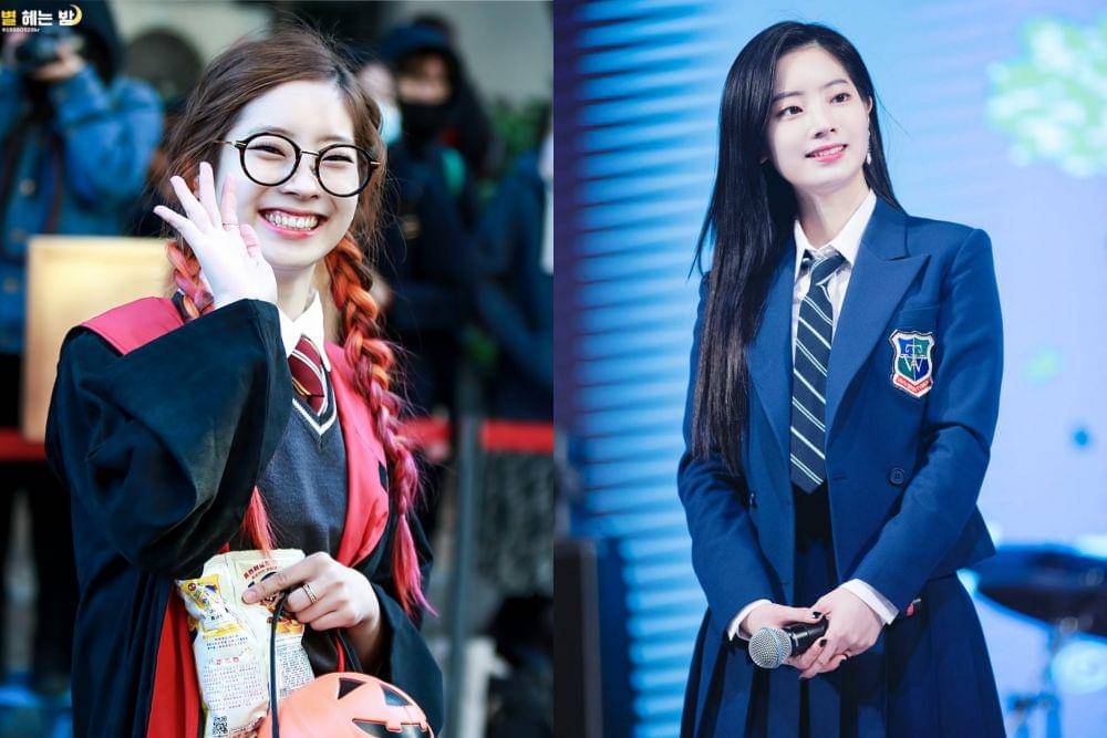 Punya konsep yang cute dan girly, para member TWICE memang kerap tampil dengan berbagai outfit yang dapat mendukung konsep mereka. Tak terkecuali Dahyun. Rapper TWICE yang selalu tampil ceria ini terlihat sangat cocok dengan outfit seragam sekolah yang membuatnya semakin menggemaskan.