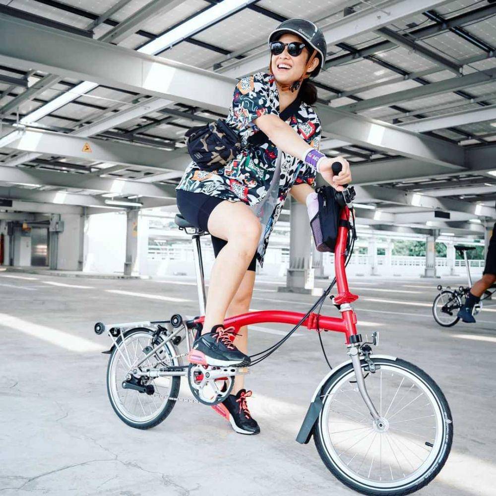 5. Pertama kali bersepeda, Dian Sastrowardoyo masih menaiki sepeda lipat. Ia akui bahwa belum berani naik road bike