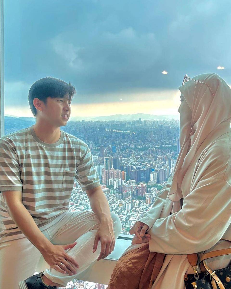 8. Jauh-jauh ke Taiwan, keduanya foto bersama di Menara Taipei 101 yang memang terkenal di kalangan turis