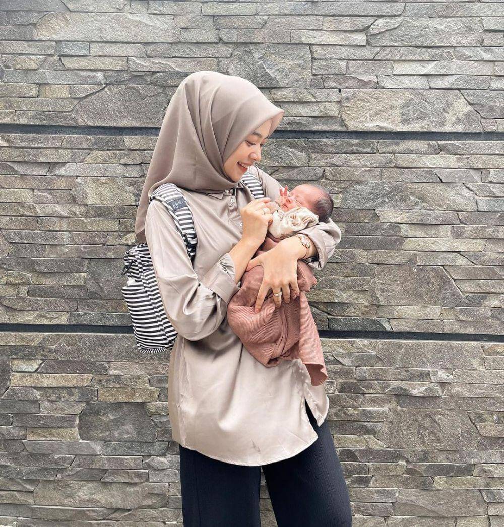 6. Istri Ikbal Fauzi yang berprofesi sebagai dokter juga tampak telaten menggendong Latisya